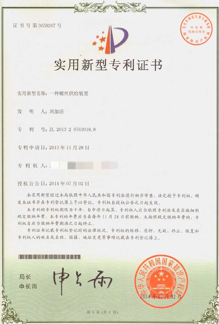 螺絲機(jī)專業(yè)生產(chǎn)廠家已通過ISO9001質(zhì)量管理體系認(rèn)證